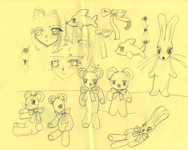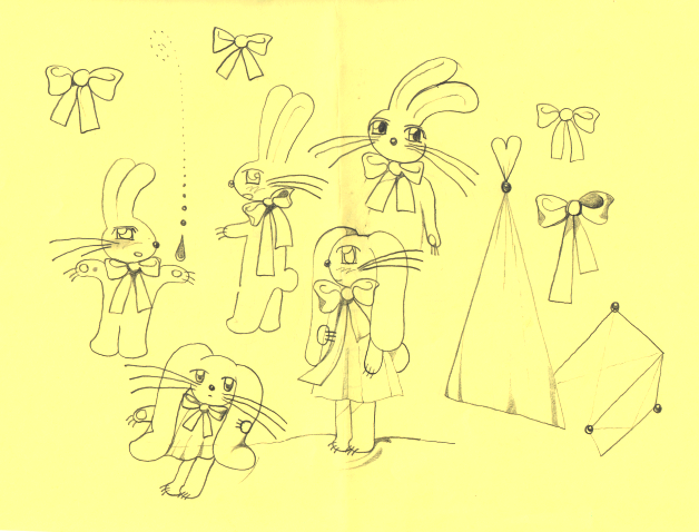 paper drawings by sofa